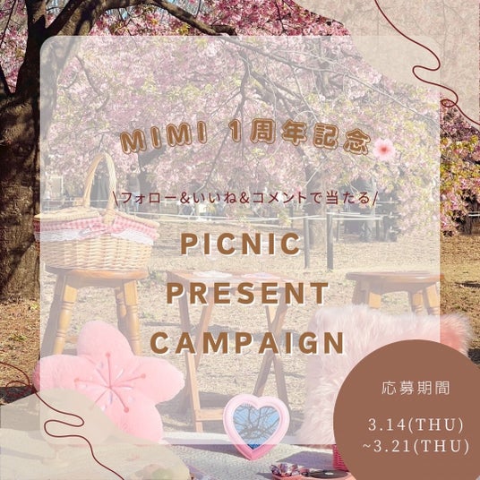株式会社ミミフィーユ(所在地:東京都新宿区)が運営する「ピクニックレンタルMimi」は、3月14日に1周年を迎えました!Mimiの1周年を記念して、抽選でピクニックレンタルを無料でプレゼント致します!