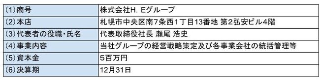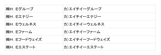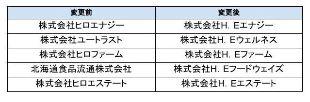 株式会社ヒロエナジー、株式会社ユートラスト、株式会社ヒロファーム、北海道食品流通株式会社、株式会社ヒロエステート、有限会社ケーイズムで構成する当社グループは、グループ戦略機能の強化、経営資源配分の最適化及び経営人材育成を推進し、あらゆる経営環境の変化にも迅速に対応できる柔軟かつ強靭な経営基盤の構築を目的として、令和5年4月1日より「株式会社H.Eグループ(令和5年2月設立)」を新設し持株会社体制へ移行するとともに令和5年5月1日をもって各事業会社の商号を変更致します。