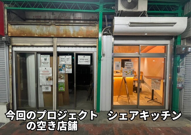このプロジェクトを始動する空き店舗はKIKKAKE PLACE(シェアキッチン)正面向かって左のスペースに位置しています。