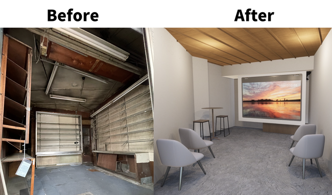 老舗神戸運動靴店だった空き店舗から巨大映像設備を設営しスポーツ観戦や様々なイベントができる場所を作ります。神戸の老若男女問わず、集い、熱狂し、笑顔が生まれ、衰退されつつある商店街に賑わいを。