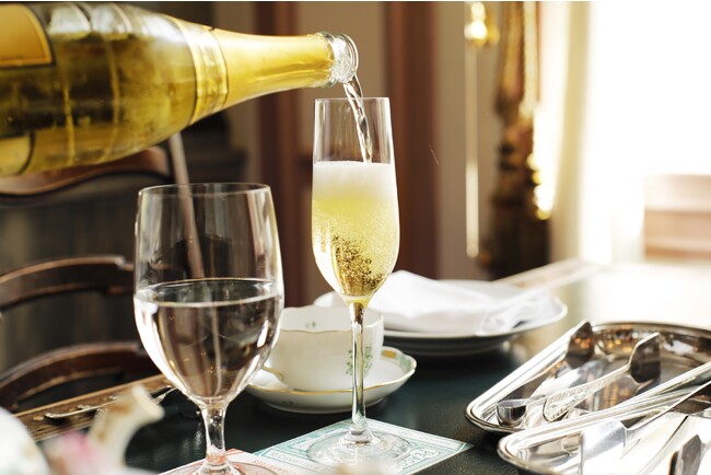 長楽館では、2023年7月1日(土)~8月31日(木)にシャンパーニュフェアを開催いたします。フェア期間中は、デザートカフェ長楽館や長楽館FRENCH LE CHENEにてプレミアムなシャンパーニュ「ドン・ペリニヨン」・「モエ・エ・シャンドン アイス アンペリアル」 ・「ヴーヴ・クリコ イエローラベルブリュット」、そしてシャンパーニュと同じ製法で作られた京都のスパークリングワイン「京都丹波トラディショナル 2014」をグラス1杯から特別価格で提供いたします。