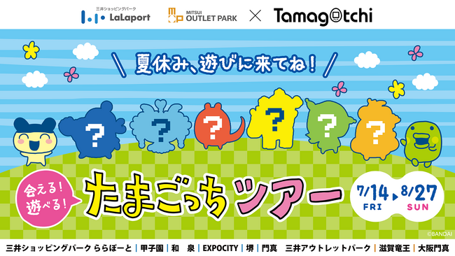 三井不動産商業マネジメント株式会社(所在:東京都中央区 代表取締役社長 大林修)は、 2023年7月14日(金)~8月27日(日)に、関西の三井ショッピングパーク ららぽーと(甲子園・和泉・EXPOCITY・堺・門真)と、三井アウトレットパーク(大阪門真・滋賀竜王)限定で、株式会社バンダイの新機種「Tamagotchi Uni」発売にあわせ、『会える!遊べる!たまごっちツアー』を開催します。
