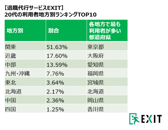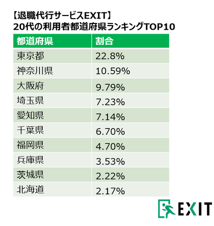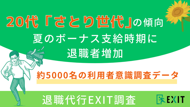 業界大手の退職代行サービス「EXIT」を運営するEXIT株式会社(東京都渋谷区、代表取締役 新野 俊幸、岡崎 雄一郎)は、利用者約5000名を対象に行った属性調査を実施し、その中で20代の退職傾向について分析を行いました。