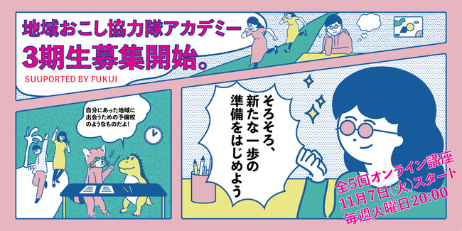福井県は11月7日(火)より、地域おこし協力隊を目指す&興味がある方、そして地域選びに失敗したくない方向けに「地域おこしアカデミー」を開催します。
