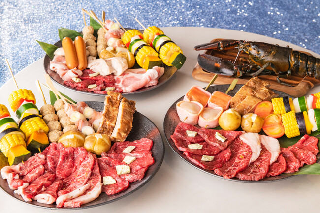 ハーブガーリックでマリネした「ポークベリー」や、低温調理した柔らかな「鶏もも肉」、「国産牛」、トウモロコシ、かぼちゃ、ズッキーニなどを一本串にした「夏野菜串」などバラエティ豊かな食材をお楽しみいただけるセットです。