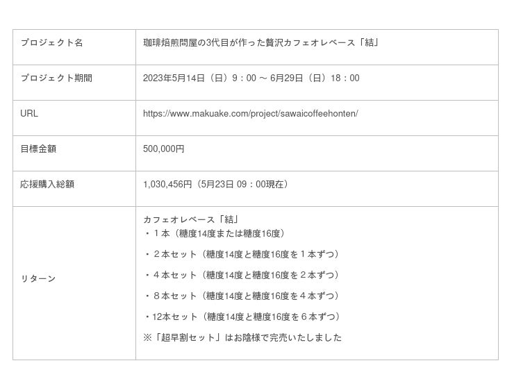 Makuakeページ https://www.makuake.com/project/sawaicoffeehonten/