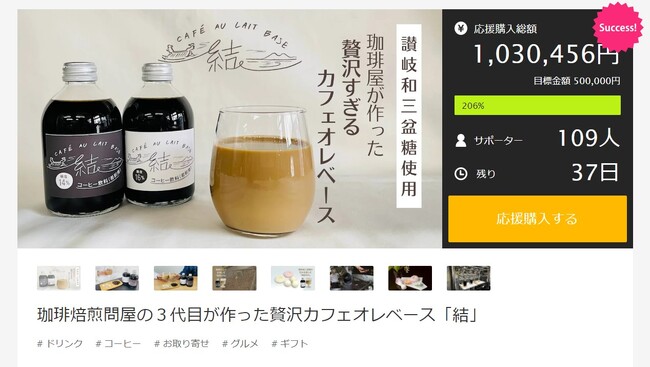株式会社澤井コーヒー本店(名古屋市東区)は、珈琲と和三盆糖だけで作ったカフェオレベース「結(ゆい)」を応援購入サービスMakuakeにて先行販売中。3代目後継者が移住者時代に出会った和三盆糖と家業の珈琲で作った故郷を結ぶカフェオレベース。自分たちだけで飲むには勿体ないほど美味しかったので商品化することにしました。開始12時間で目標金額の50万円を超え、現在100万円を超える応援を頂戴しております。