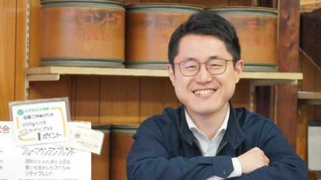 2021年4月に当社3代目の後継者としてUターン。入社後は、焙煎や珈琲についての勉強の傍ら、得意のWEBサイト構築や小売店舗での接客により、当社の情報発信力を強化している。
