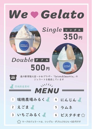 PANDAMARKETでは、地産地消の商品づくりにこだわっている、道の駅常陸大宮~かわプラザ~「Gelato&Smoothie」のジェラートの販売を7/4から開始しました。