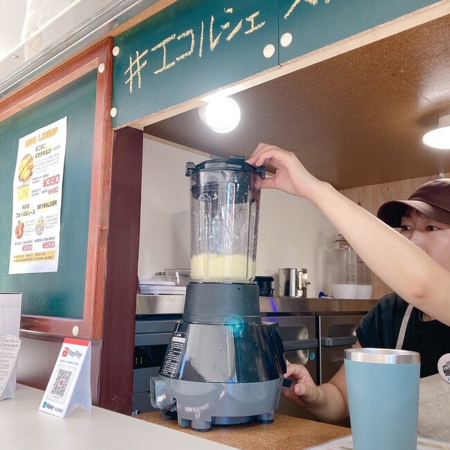 (*)ぽこぽこバナナとは、私たちも賛同している「ぽこぽこバナナプロジェクト」という”これまで人知れず廃棄されていた規格外バランゴンバナナの活用をみんなで考え、フードロスを削減する参加型プロジェクト”のバナナです。これに私たちがこれまで出会った甘酒や豆乳をはじめとする植物性ミルク、横須賀にある酪農家さんが作っている牛乳などを合わせたバナナジュースはエコルシェスタンドの看板商品として、企画時から発案していた商品です。