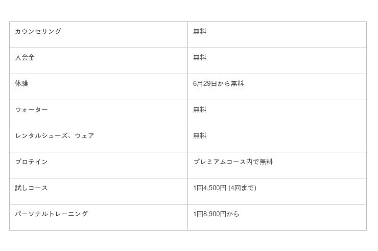 パーソナルトレーンング料金案内