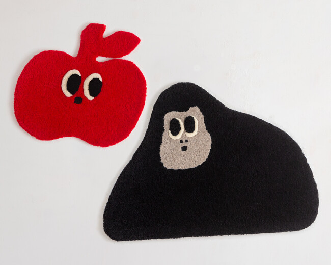 絵本のオリジナルキャラクターであるリンゴとゴリラをモチーフとしたお部屋が楽しくなるラグマットを、山形県中山町を拠点として昭和22年から絨毯をつくる穂積繊維工業とコラボレーションをして制作いたしました。職人の手で1点づつ織られた天然素材ならではの気持ちよさを、是非この機会にお手に取って感じて下さい。