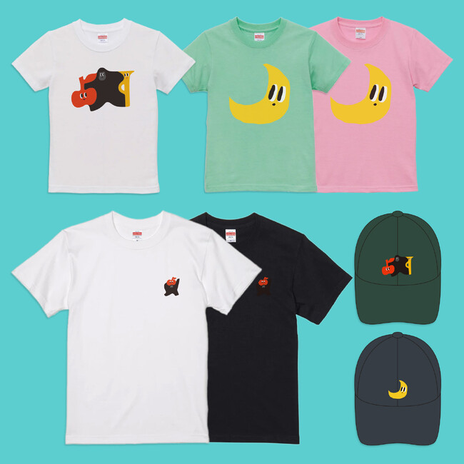作品展限定でキャラクターのオリジナルグッズ販売を行います。Tシャツやキャップは、子どもと大人で一緒に着てリンクコーデを楽しんでいただけます。