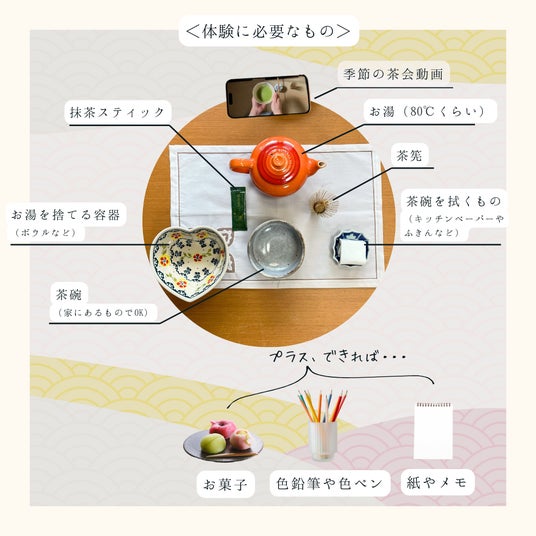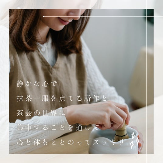 月にたった15分、抹茶を点て、香りや音、季節を五感で感じながら、ご自宅で心と体をそっとととのえるリセット習慣です。