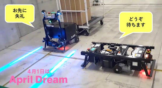 二つ目に、AGV同士で上手く譲り合いができない場合があります。例えば、交差点などで複数のAGVが同時に出合った際、同時に侵入して事故をおこしたり、逆に衝突防止センサーにより停止したまま通路を遮り、通行人の負担となってしまう事例があります。