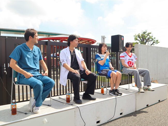 また、トップアスリート同士の情報交換の場として、同日試合を行っていたアメリカンフットボール・アサヒビールシルバースターの岩本卓也選手との対談を実現。他競技のアスリート同士で行う情報交換や情報共有の意義について語りました。