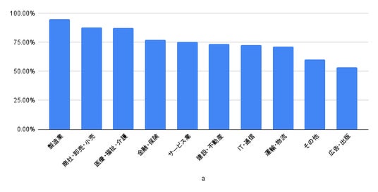 1位 製造業 95.12%(78件/82件)