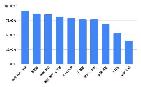人材不足を感じている業種は現場仕事が顕著