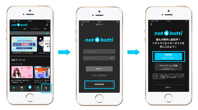 『not botti』アプリをスマートフォンの「App Store」からダウンロードしてください。※