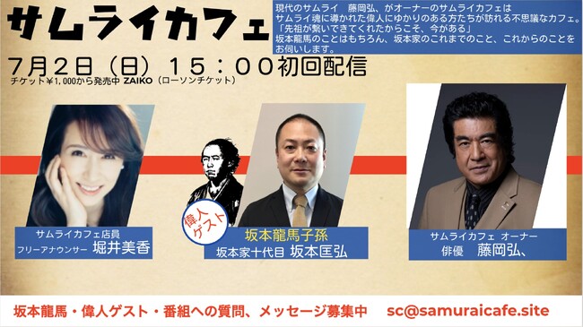 初回偉人ゲストに、坂本龍馬の子孫で坂本家十代目当主の坂本匡弘さんをお迎えし