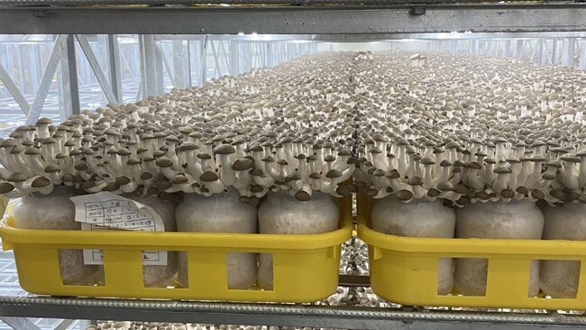 きのこ業界では、使用済み培地(キノコを収穫した後の培地)の処分や再利用が課題となっており、那須工 場においても、1日あたり約10トンの使用済み培地が発生します。これらの使用済み培地とカットした石突を、 農業用ぼかし肥料や牛の飼料として100%再利用いたします。