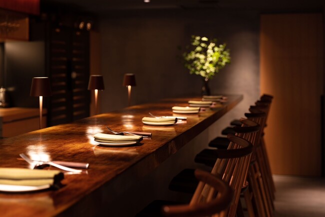 【内装:圧巻の漆塗りカウンター 意匠を凝らした贅沢なプライベート空間】