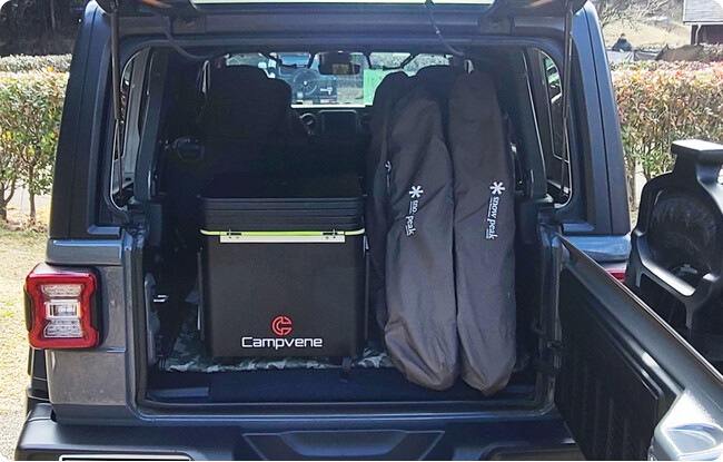 BOX内は約65Lの食材やキャンプグッズを収納可能。水やお肉など、かさばるものを一気に収納できるから、料理の準備がすぐできます。