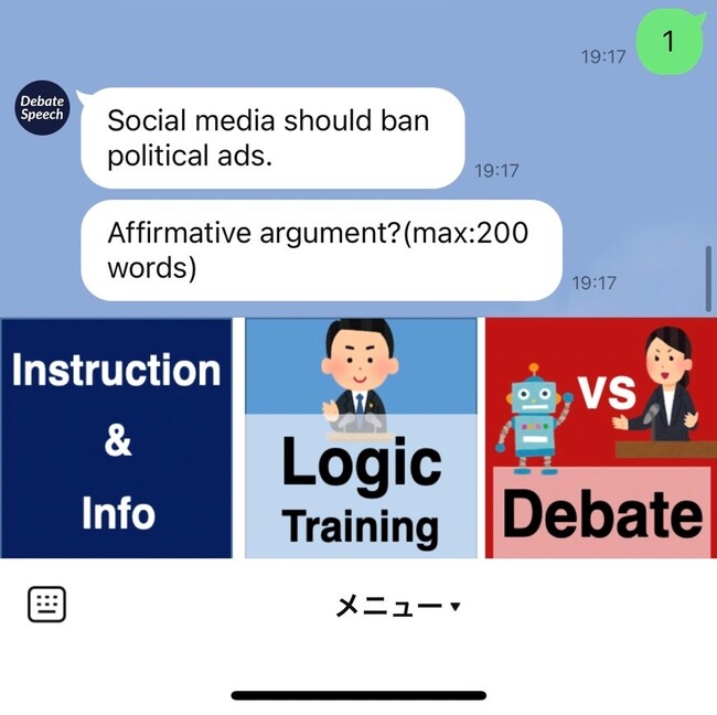 "Debate"では、ユーザーとBOTがディベート形式でスピーチします。