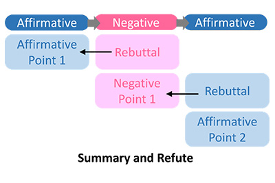 Debateでは、Summary and Refuteと呼ばれる立論と反論のトレーニングを行います。