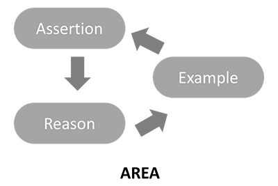 Logic Trainingでは、三角ロジックとも呼ばれるAREA(主張:Assertion、理由:Reason、例:Example、主張:Assertion)でのスピーチ練習を行います。