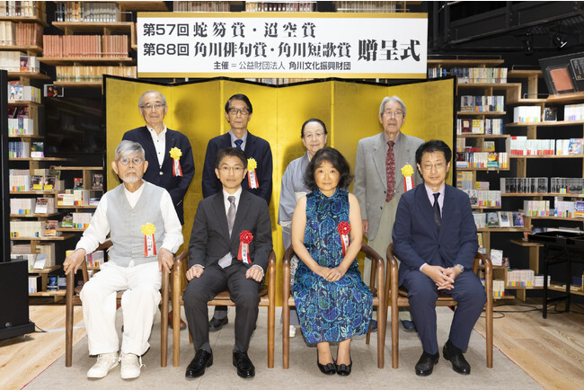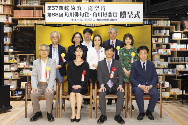 公益財団法人角川文化振興財団(理事長・川上量生)は、2023年7月4日(火)、埼玉県所沢市の角川武蔵野ミュージアム内の本棚劇場において、「第57回蛇笏賞・迢空賞」及び「第68回角川俳句賞・角川短歌賞」の贈呈式を開催。受賞者と各賞の選考委員、関係者35名が出席した。