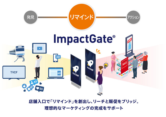 株式会社ロケット(本社:東京都港区、代表取締役社長:林 潤一、以下「ロケット」)が開発運営する小売店舗入口の広告メディア『インパクトゲート(R)』が、大手7リテール・8,200店舗超に拡張。月間接触人数が1.6億人(※2)を超え、「横断型」リテール広告媒体として最大級のオフラインメディア・ネットワークに成長しました。