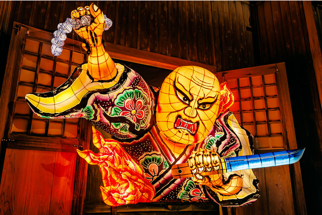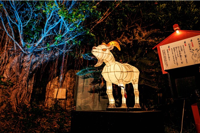 琉球王朝時代の街並みを再現した施設「体験王国むら咲むら」で昔から沖縄で語り継がれてきた妖怪を、あかりのオブジェとして日本を代表する”青森ねぶた”の技術で制作し、迫力ある妖怪たちが潜む空間を演出いたします。暗い石畳を進んで来場者自ら見つけ出した妖怪と妖怪にまつわる物語をスタンプラリー形式で楽しんでいただきます。