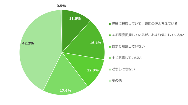 最後に、普段資産運用を行うにあたり、証券会社手数料、為替、税金などの運用コストを意識しているか尋ねたところ、「詳細に把握していて、運用の肝と考えている」と回答したのは全体の11.6%に留まり、残りの約90%近くは「気にしていない」ことがわかりました。
