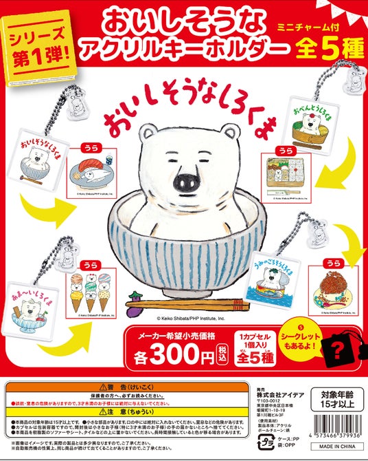 株式会社アイデア(本社:東京都中央区、代表取締役社長:井上宗則)は、柴田ケイコ先生作絵本『しろくまシリーズ』初のカプセルトイ、【おいしそうなアクリルキーホルダー】を1月4日(木)より、全国カプセルトイ店舗にて随時販売いたします。