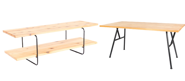 福井県大宮町美山の森から採られた間伐材でつくられた家具。