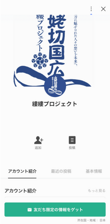 縷縷プロジェクトでは、当社が支援して「縷縷プロジェクトLINE公式アカウント」を運用します。当アカウントは共同オーナーのみが参加できるオンラインコミュニティとして機能し、山姥切国広に関する最新情報や特典情報の共有などに活用します。