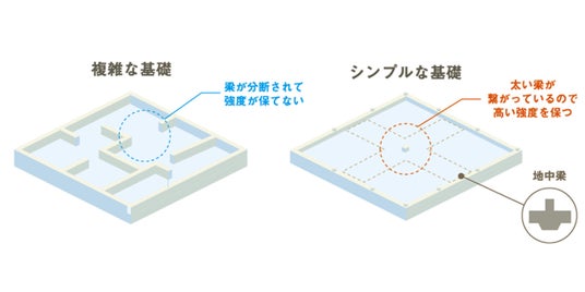 従来の基礎設計(左)から高い強度を誇るシンプルな基礎(右)を採用した