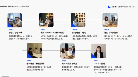 このような企業の課題を解決するため、当社は、ターゲット人材に響く採用メッセージを明確化し、企業の魅力を最大限に伝える「伴走型採用ピッチ資料制作」サービスを開始しました。