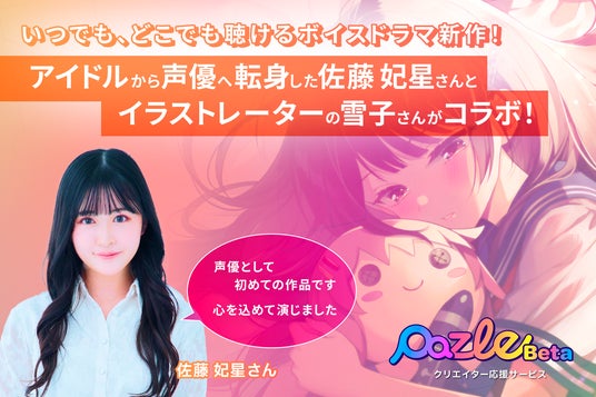 VECTOR合同会社(本社:東京都港区、代表社員:吉野直樹)は、異業種間のコラボレーションを促進するクリエイター支援サービス『PAZLE(パズル)』のベータ版において、声優の佐藤妃星さんとイラストレーターの雪子さんの異業種コラボレーションによるボイスドラマを2023年12月21日(木)に公開します。