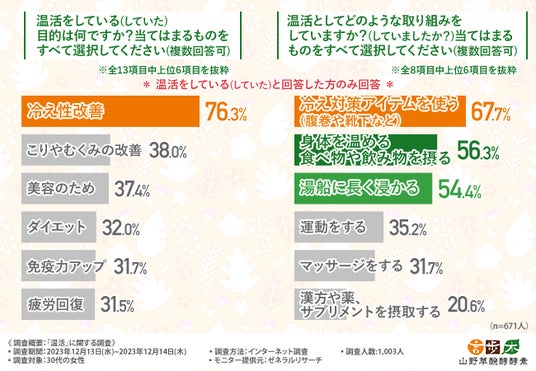 温活経験者は約7割!目的は「冷え性改善」や「こり・むくみ改善」
