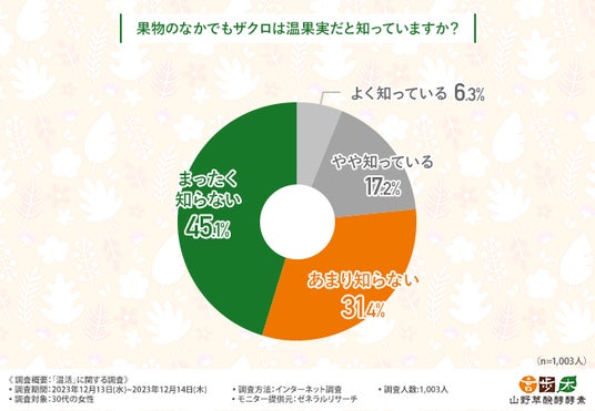 その一方で、ザクロが温果実であることを知っているのは約2割であり、あまり認知されていないということが判明しました。
