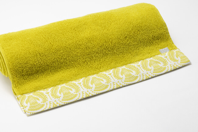 タオルはプリント生地の色合いに合わせて染めあげています。さらに、ステッチの糸の色選び等、細部までこだわった上質な仕上がりとなっています。また、タオル生地は、柔らかく、吸水性に優れたパイル地を使用し、オールシーズン使っていただけます。お届けはオリジナルの箱に入れてお届けするため、ギフトにもぴったりです。限定枚数で作っているため、各カラー無くなり次第販売終了となります。