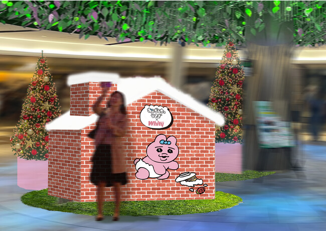 クリスマスプレゼントを配ろうとしたおぱんちゅうさぎが煙突に頭を突っ込んで抜けなくなりお顔が見えていない…そんなレアなシチュエーションを表現したスポットが登場!またクリスマスツリーには、隠れおぱんちゅうさぎがいるかも・・・!?ぜひ探してみてください。今年のクリスマスシーズンは、おぱんちゅうさぎと一緒に記念撮影をしたり、隠れおぱんちゅうさぎを探したりと、楽しいひと時をホワイティうめだでお過ごしください。