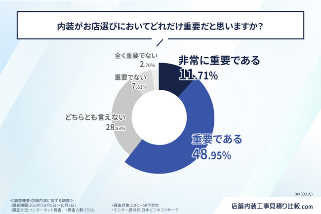 ・店舗の内装がお店選びで重要であると回答した割合は?