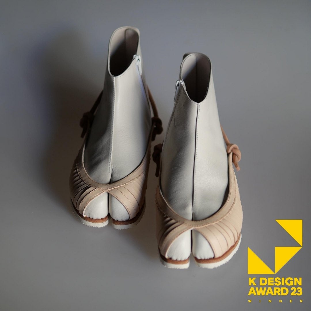 吉靴房の持つ革の技術力と和の知見と、HUMAN AWESOME ERRORのリサーチによってデザインの検討が重ねられ、完成した靴は2023年には韓国ソウルで行われる国際賞、K DESIGN AWARD を受賞しました。