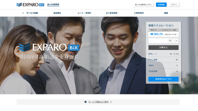 エクスパロBiXは、「より速く、より安く、より便利に」をサービスの目標として掲げ、1回あたり3000万円までの韓国送金をお受付しております。