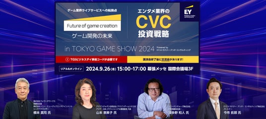 EYストラテジー・アンド・コンサルティング株式会社(略称:EYSC、代表取締役社長:近藤 聡)は、東京ゲームショウ2024(略称:TGS2024 <https://tgs.cesa.or.jp/>)において、TGSフォーラム2024「ゲーム開発の未来~Future of Game Creation~/エンタメ業界のCVC投資戦略」を開催します。元スクウェア・エニックス取締役の橋本真司氏、アマゾンジャパン/アマゾンゲームスタジオ アジア・日本代表の山本恵美子氏、ソニーベンチャーズ社長の波多野和人氏などが登壇します。