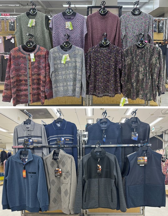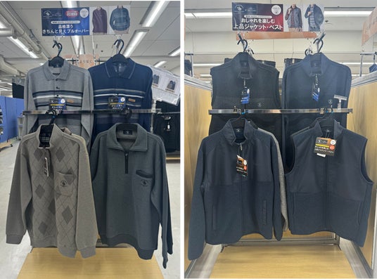 昨シーズンにつづき、レディース商品では婦人服ブランドとのコラボを行い、快適な着心地にこだわったカットソー、重ね着しやすく軽くて動きやすいベスト・ジャケットや、保温性が高く洗濯機で洗えるお手入れ簡単ニットを展開。