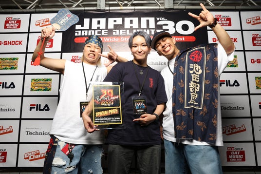 『JAPAN DANCE DELIGHT VOL.30 FINAL』の激戦を制し、見事優勝チームとして輝いたのは京都府のメンバーからなる「咫和巵×無名」です。規格外のパワーとバイブスが持ち味の10代~20代の4名からなる若手HIP HOPダンスチームで、今回2大会連続の優勝を飾りました。この結果は『JAPAN DANCE DELIGHT』の歴史でHIPHOPチームとしては史上初で、2連覇達成という記録は2チーム目です。優勝に際し、チームリーダーのYU-SEI氏は「気持ちだけで踊っていたので自信がなく、踊り切れただけでも良かったと思っていた。優勝できて嬉しい」とし、永久シード権を得た次回以降の出場に関しては「タイミングで」と終始クールに語りました。
